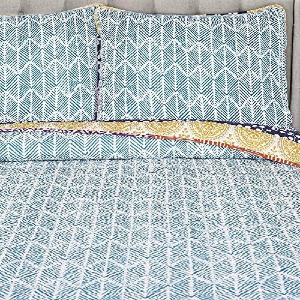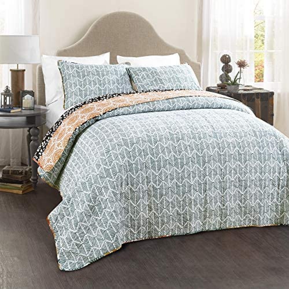Lush Décor Bohemian Striped Quilt Reversible 3 Piece Bedding Set, King, Turquoise