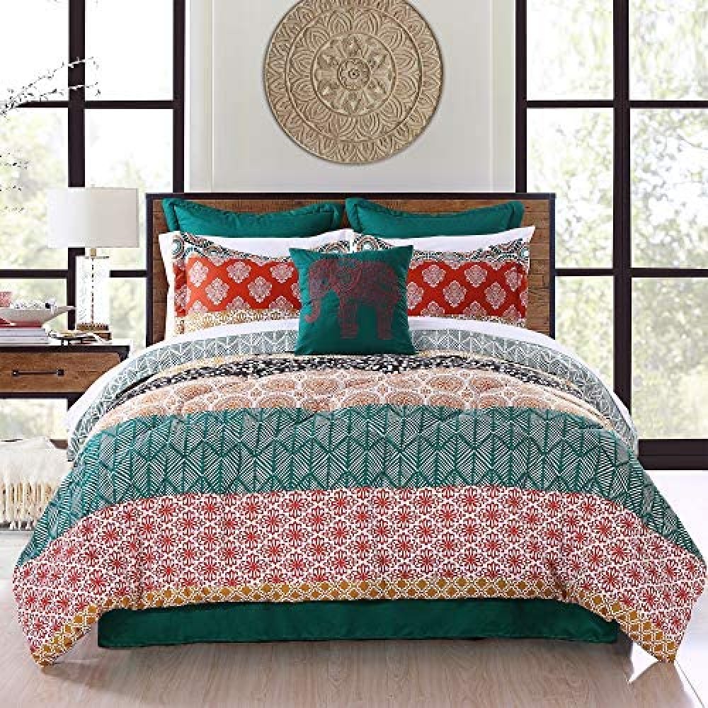 - Bright, colorful and unique design with floral and geometric striped patterns for a mix of modern and bohemian bedding style.