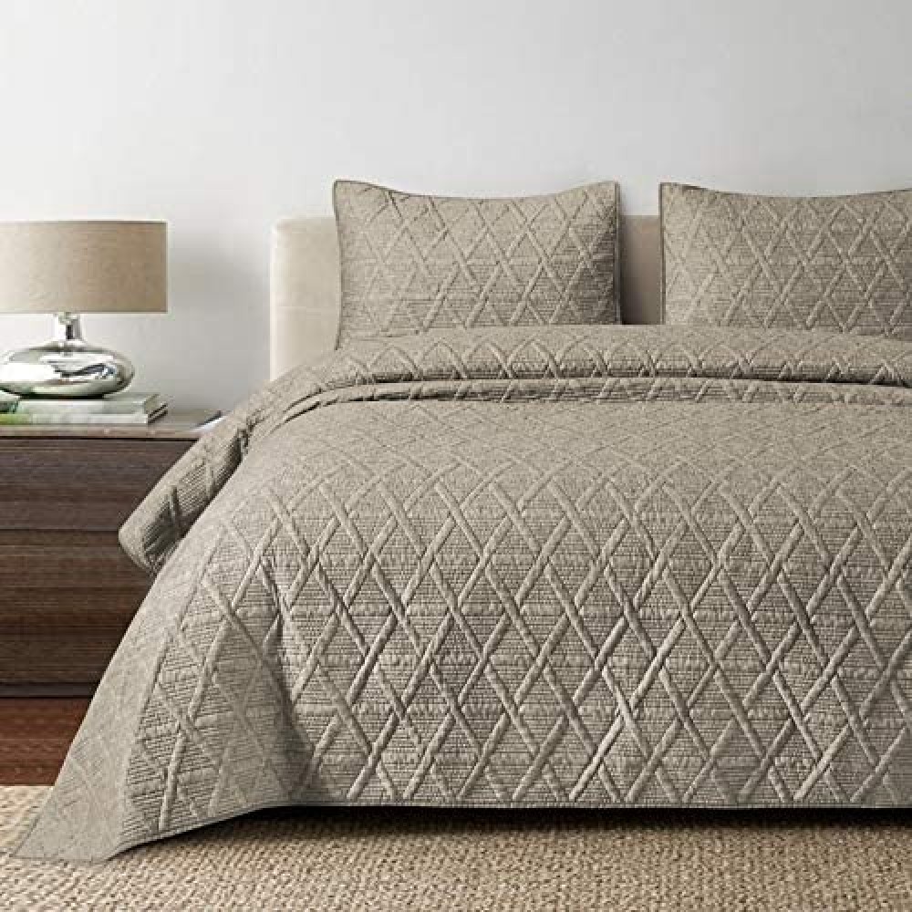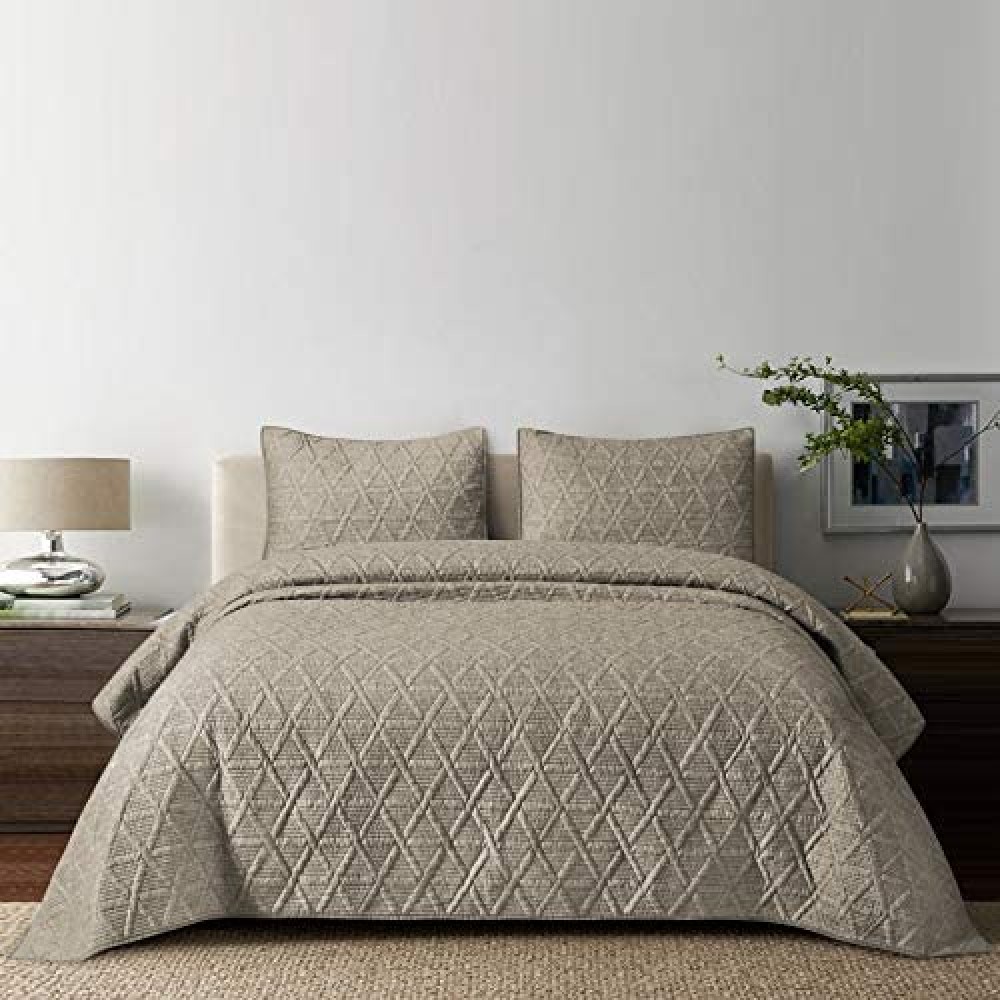 - FINE DESIGN & WORKMANSHIP: The special blend yarn with finishing add more texture look and natural shade than the plain solid microfiber. The modern geometric pattern with well tailor easily match any bedroom décor. Revers with solid microfiber, the quilts instantly changes the look of your space. the pillow shams comes with a sided envelope closure for easy changing and care.