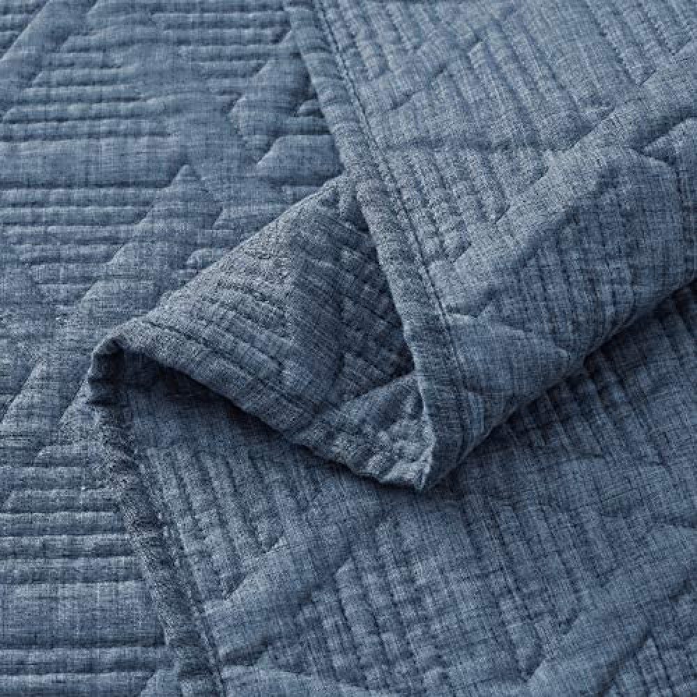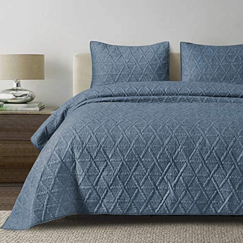 SHALALA NEW YORK Cotton Blend Voile Quilt Set (3 Piece) - Ultra Soft - Pre-Washed Geometric Coverlet Set – 1 Lightweight Reversible Bedspread 2 Quilted Shams for All Season (Navy Blue)